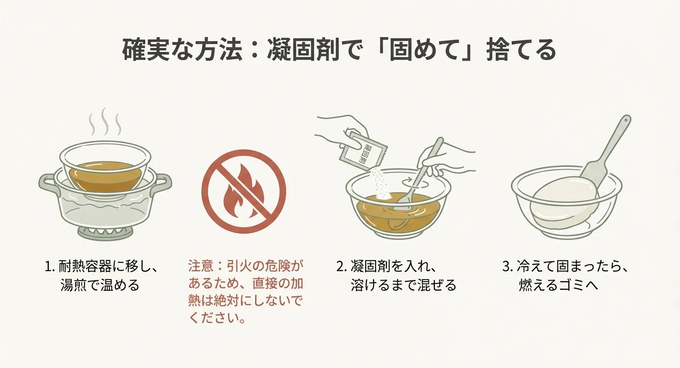 • 市販の凝固剤を使ってオイルを固めて捨てる方法