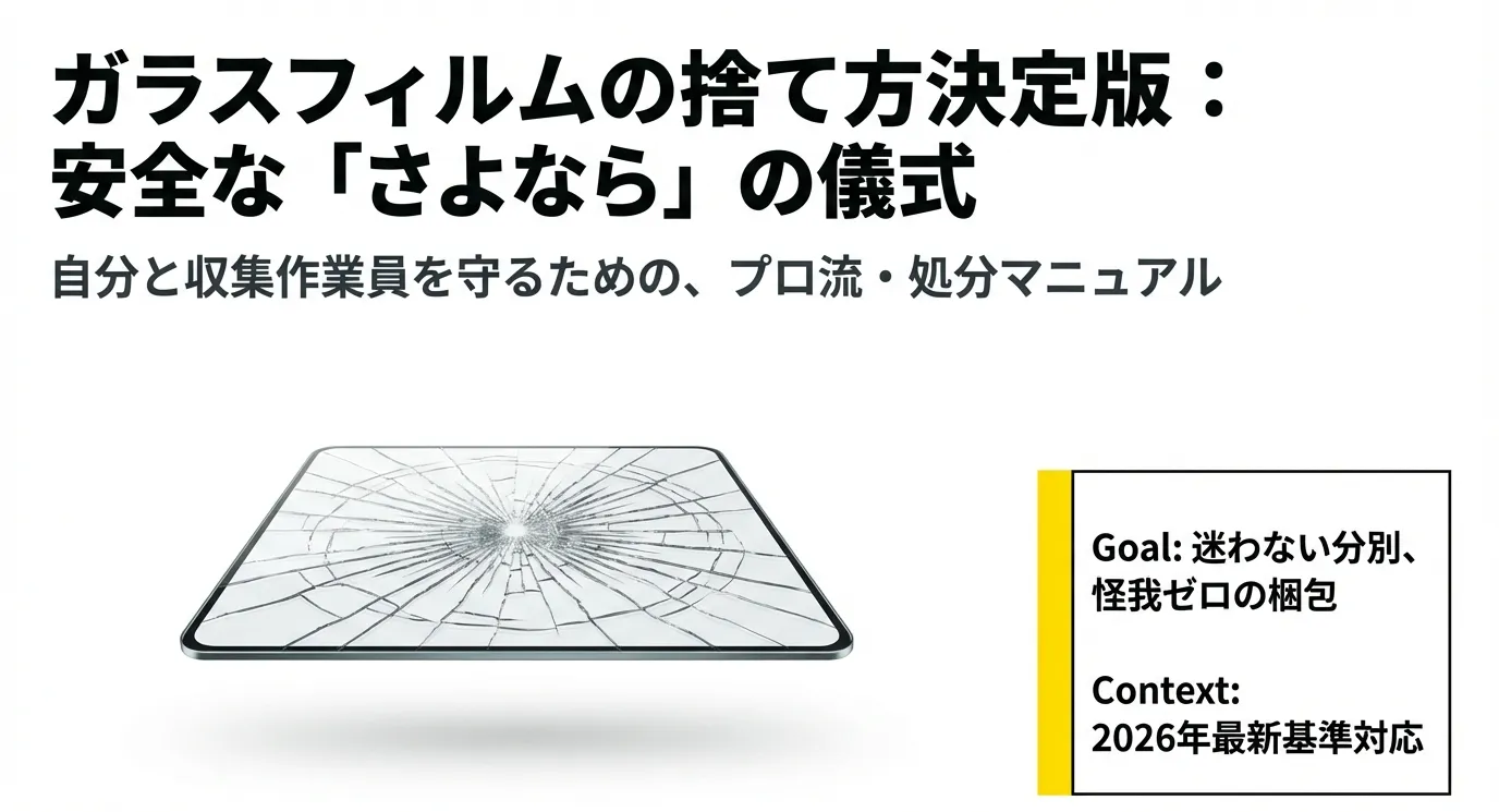 スマートフォンの保護に欠かせないガラスフィルムですが、いざ捨てようとすると「何ゴミに出すべき?」「割れた破片で誰かが怪我をしないか不安」と迷ってしまうものです。特に最近のガラスフィルムは強固な素材が使われているため、正しい知識を持たずに処分すると、収集作業員の方やご家族に思わぬ怪我をさせてしまうリスクもあります。