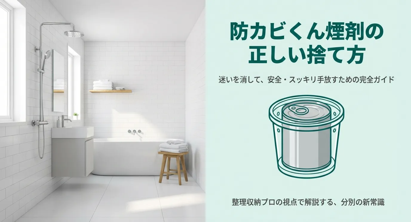 お風呂掃除の強い味方である防カビくん煙剤ですが、いざ使い終わった後の空き缶や、棚の奥から出てきた古い未使用品の処分に困ったことはありませんか。「金属製だから不燃ゴミ?」「プラスチックのパーツはどうすればいいの?」「未使用のまま捨てると火災の原因にならない?」といった疑問や不安を抱くのは、あなたが丁寧に暮らそうとしている証拠です。