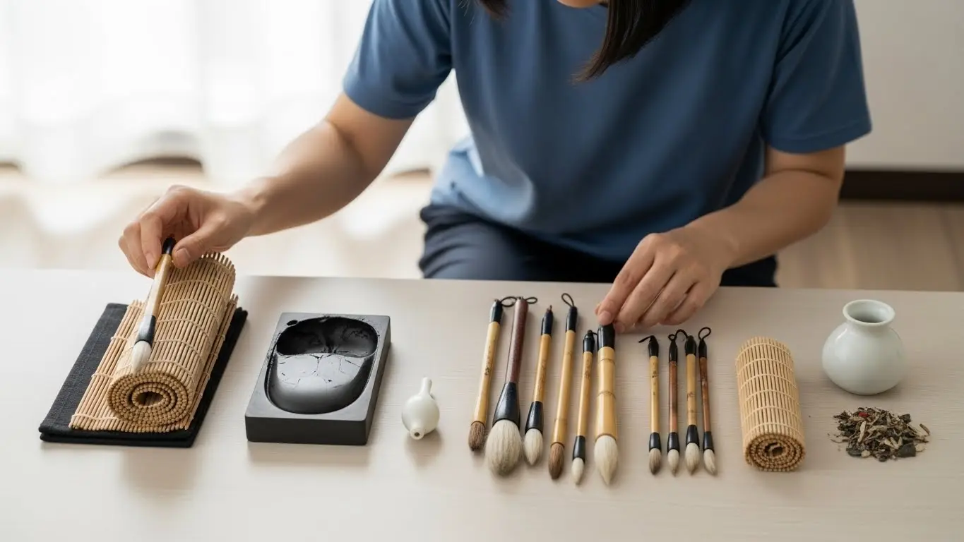 次に服装です。白い服やお気に入りの服は厳禁です。「汚れてもすぐに捨てられる服」か、あるいは「黒い服」を着用してください。さらに、手には使い捨てのビニール手袋やゴム手袋を必ず装着しましょう。墨汁が爪の間や指紋に入り込むと、数日間は黒い色が取れなくなります。