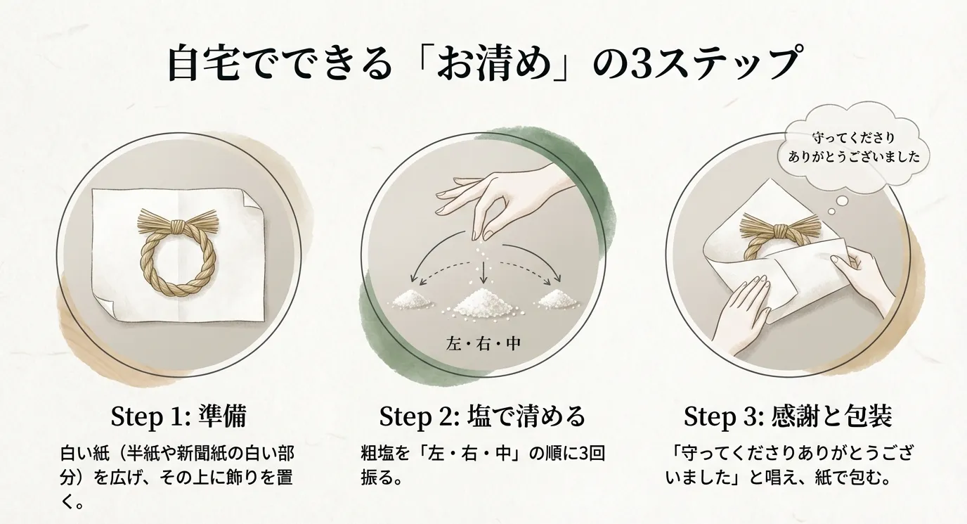 - 感謝を伝える: 「今年一年(または松の内)、我が家を守ってくださりありがとうございました」と心の中で唱えます。
