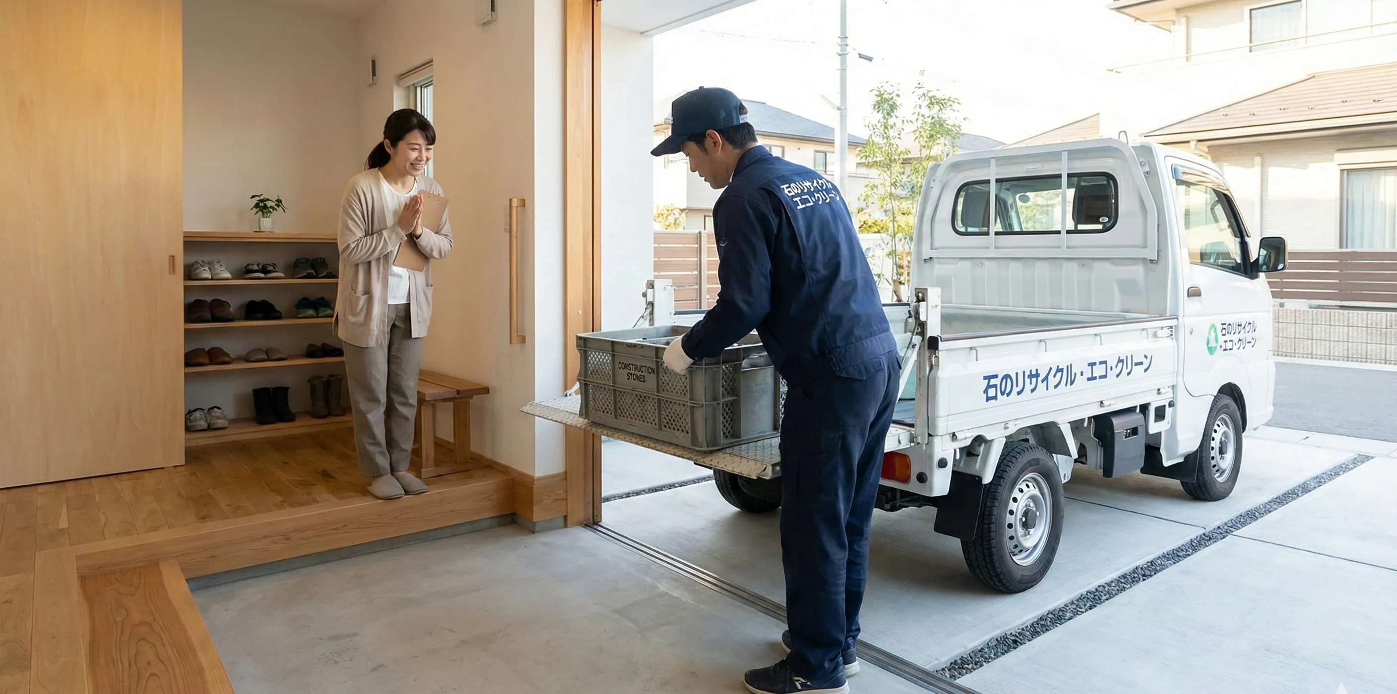 引っ越しの日程が迫っていて時間がない場合や、重い石を運ぶ手段も体力もないという方にとって、最後の砦とも言える解決策が不用品回収業者への依頼です。不用品回収業者を利用する最大のメリットは、何と言っても「手間の少なさ」と「スピード」です。