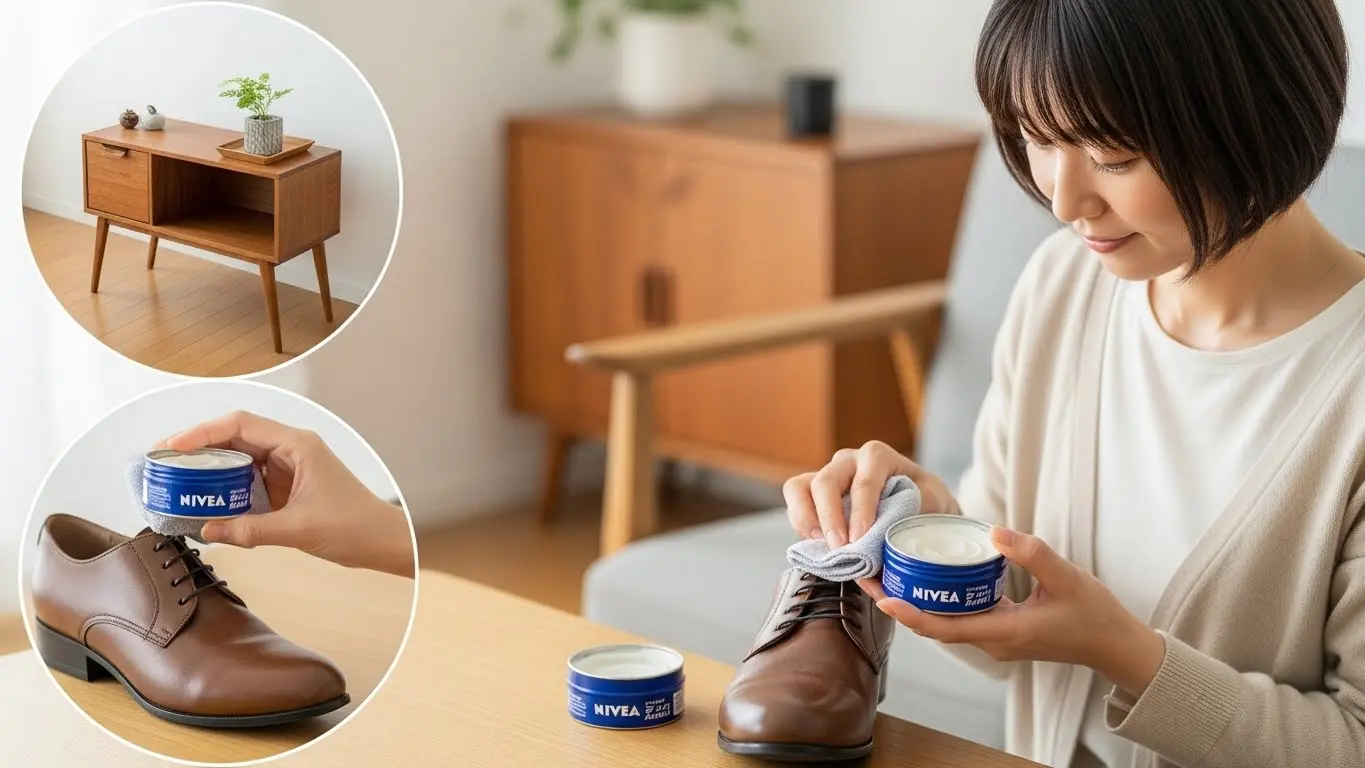 肌に塗るには古くなってしまったけれど、そのまま捨てるのは忍びない。そんなときは、ニベアクリームの油分を活かして「掃除道具」として使い切るのがおすすめです。実はニベアクリームは、成分に含まれる油分とワックス成分により、革製品のメンテナンスやシール剥がしに非常に優秀な効果を発揮します。