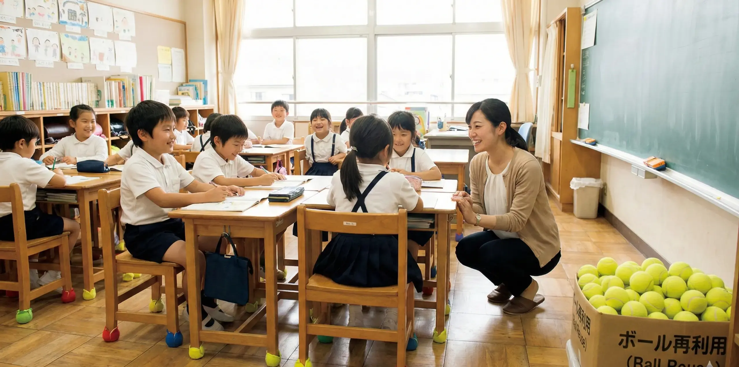 教室の椅子や机の脚に切り込みを入れたテニスボールを履かせることで、子どもたちが椅子を引く時の「ギギーッ」という不快な音や衝撃音を消すことができます。これは、聴覚過敏を持つ児童への配慮や、補聴器を使用している子供たちにとってノイズの少ない学習環境を守るために非常に効果的です。全国の多くの小学校や特別支援学校で導入が進んでいます。