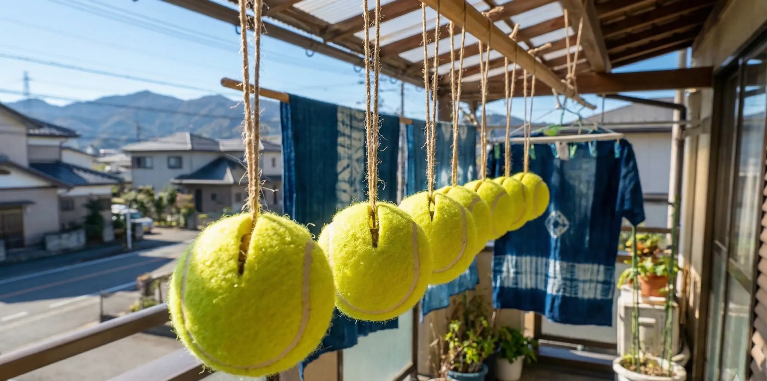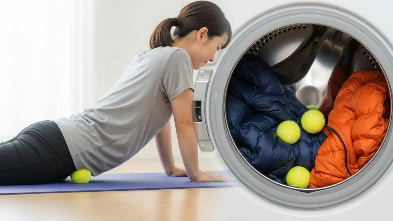 意外と知られていないのが、「洗濯・乾燥時の助っ人」としての役割です。ダウンジャケットや羽毛布団を自宅で洗濯し、乾燥機にかける際、清潔なテニスボールを2〜3個一緒に入れて回してみてください。ボールが乾燥機の中で跳ね回ることで、濡れて固まった羽毛を優しく叩いてほぐし、空気を含ませてふっくらとしたボリュームを復活させてくれます。
