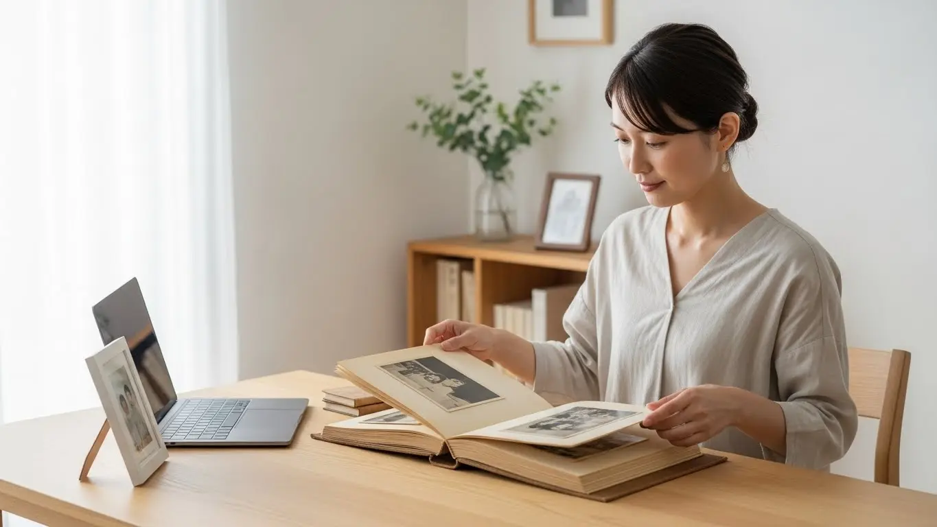 また、プロのサービスでは、色褪せた写真の「色調補正」や、日付情報の付与、顔認識によるフォルダ分けなど、個人では難しい付加価値を提供してくれる場合もあります。特に、親御さんの家の片付け(実家じまい)などで大量のアルバムが出てきた場合は、兄弟姉妹でお金を出し合って業者に依頼し、データをクラウドで共有するのが最も平和的で効率的な解決策となるでしょう。