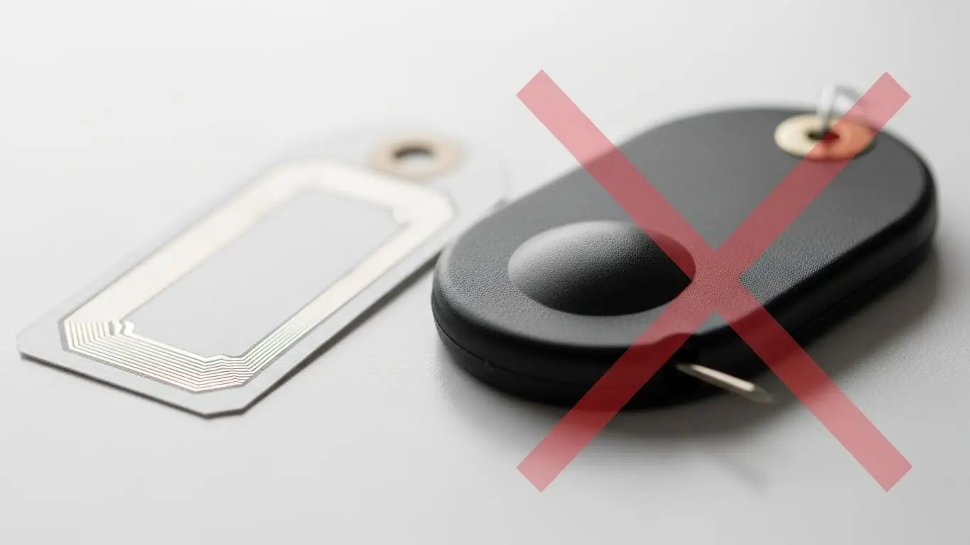 ここで一つ、絶対に間違えてはいけない重要な例外があります。それは、会計時に店員さんが専用器具で取り外すはずの、プラスチック製のゴツゴツした「ハードタグ(防犯タグ)」です。これは今回解説している紙やシールのRFタグとは全くの別物です。