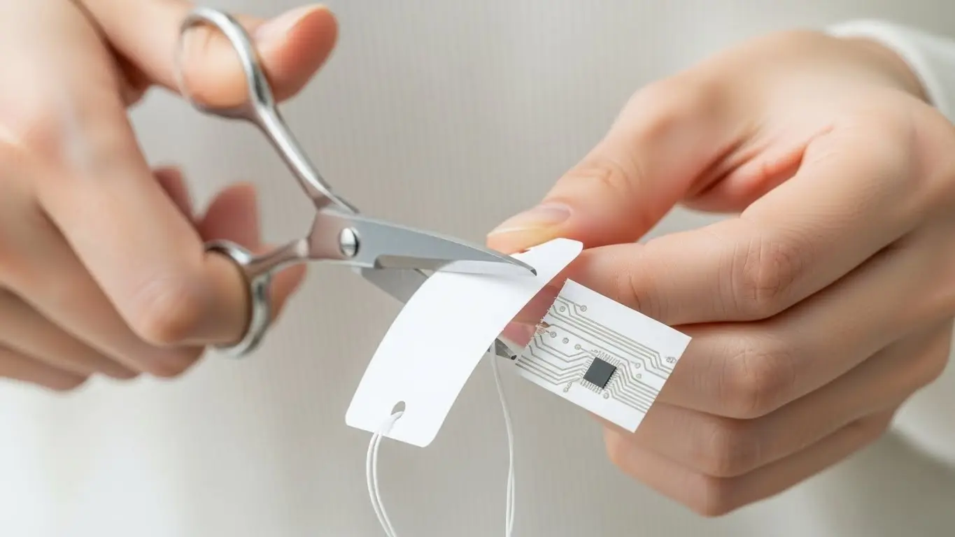 RFタグは、アンテナ回路の一部が物理的に切断されると、電波を受信するためのエネルギーを得られなくなり、即座に機能を完全に停止します。 いわば「物理的に壊す」ことができるのです。これを行うだけで、電子機器としての機能はなくなり、ただの「紙とプラスチックのゴミ」になります。誰かに読み取られる心配も100%なくなりますし、何より「自分で情報を断ち切った」という実感が、処分する際の罪悪感を消し去ってくれます。