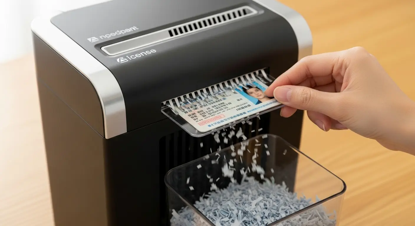 - 表面情報の破壊: 表面情報は、判読不能になるまで細かく裁断してください。ハサミで切るか、クロスカット方式のシュレッダー使用が推奨されます。これで氏名、住所、生年月日、顔写真、免許証番号の悪用を防げます。