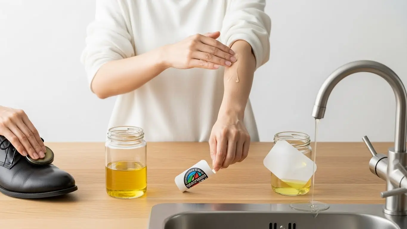 - 注意点: 合成香料が含まれている場合、革に匂いが移る可能性があります。また、種類によってはシミになるリスクが高いため、必ず目立たない場所(靴の内側や底面近くなど)で少量試し塗りをしてから使用してください。デリケートな高級皮革には専用クリームを使いましょう。