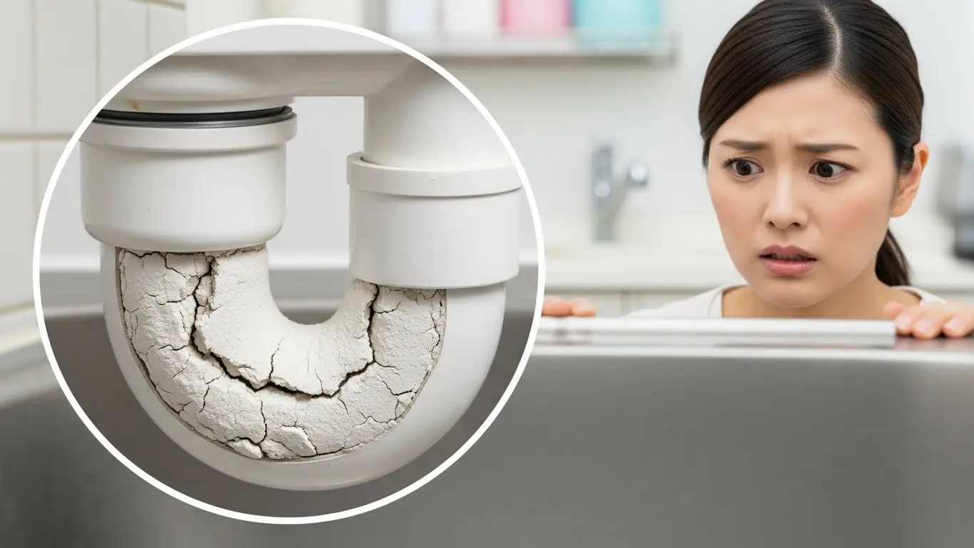 特に危険なのが、悪臭や害虫の侵入を防ぐために設置されている排水管の「S字カーブ部分(トラップ)」です。ここにデンプンが蓄積すると、通常の水流では押し流すことが困難になり、最悪の場合、完全に管が閉塞して水が逆流する事態を招きます。