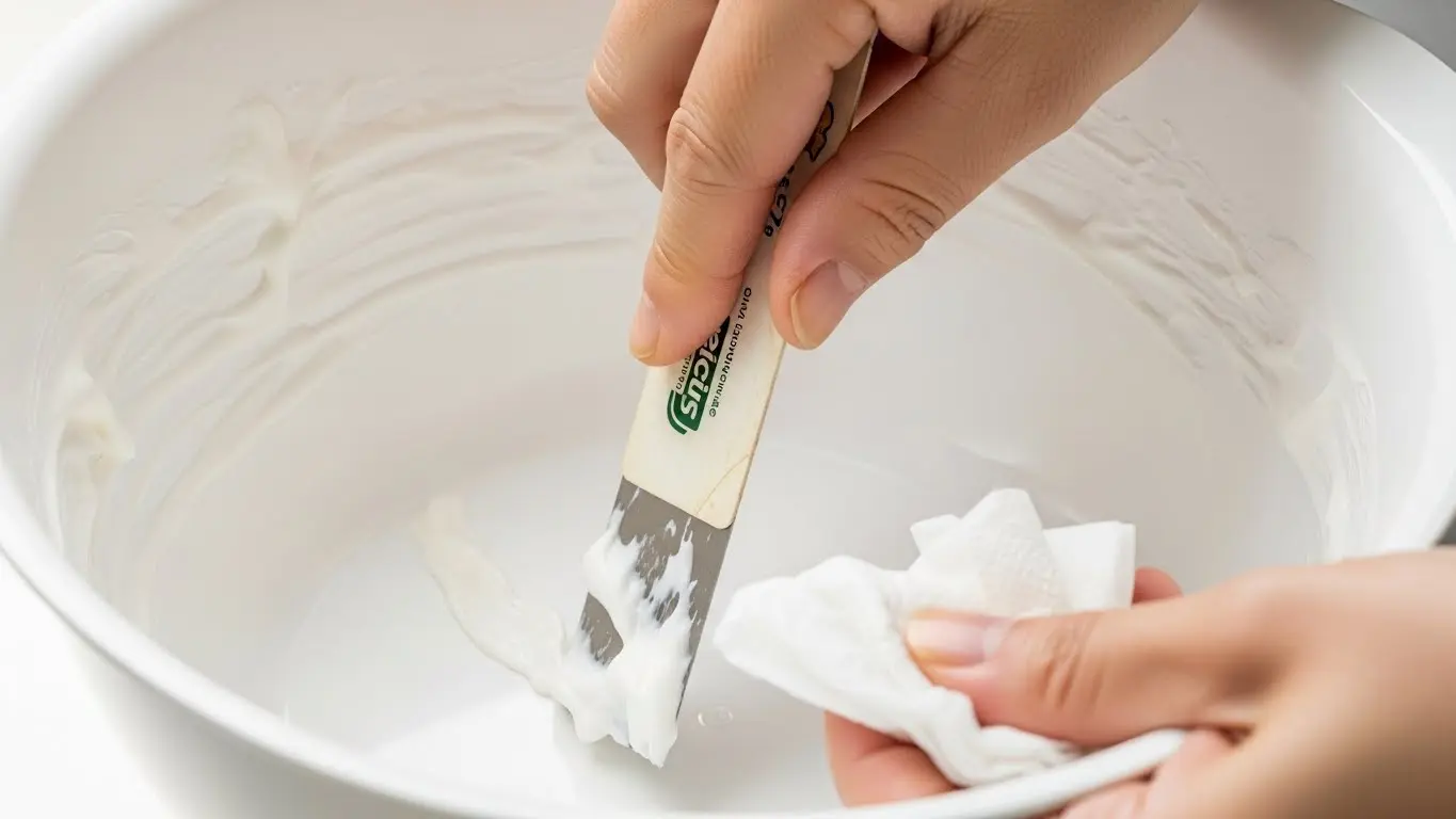 大まかな汚れを取ったら、次はキッチンペーパーや古布で容器全体を丁寧に拭き上げます。白い粉っぽさがなくなるまで、しっかりと拭き取ることが重要です。この「予洗い」ならぬ「予拭き」を徹底することで、排水溝に流れるデンプンの量をほぼゼロに近づけることができます。