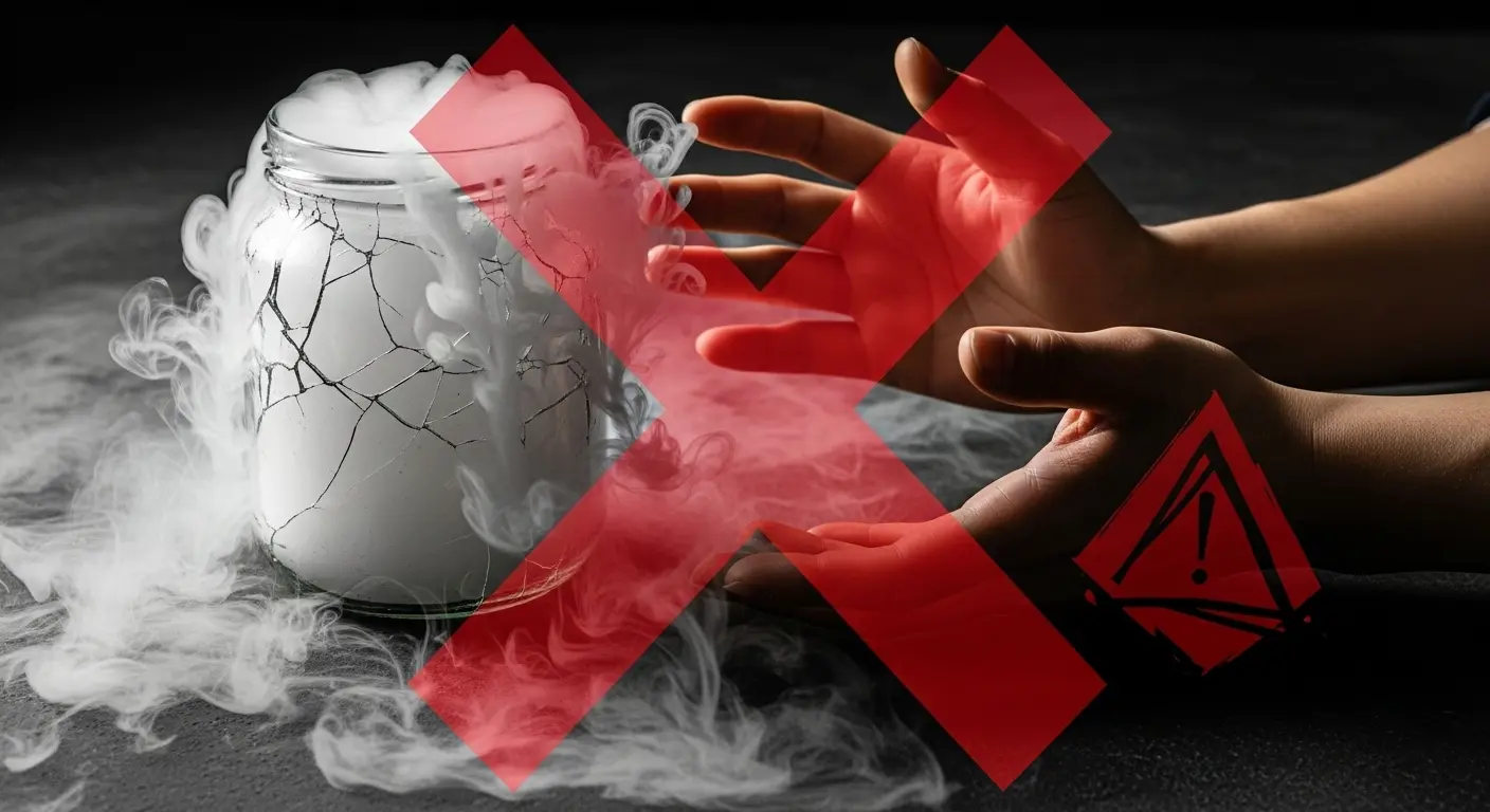 ドライアイスは便利で楽しい反面、取り扱いを一歩間違えると重大な事故につながる危険物でもあります。これまでの解説でも触れてきましたが、ここで改めて「絶対にやってはいけない禁止事項」を明確にまとめておきましょう。これらは自分だけでなく、家族全員、特に状況判断の難しい子供にもしっかりと伝えておくべき重要なルールです。
