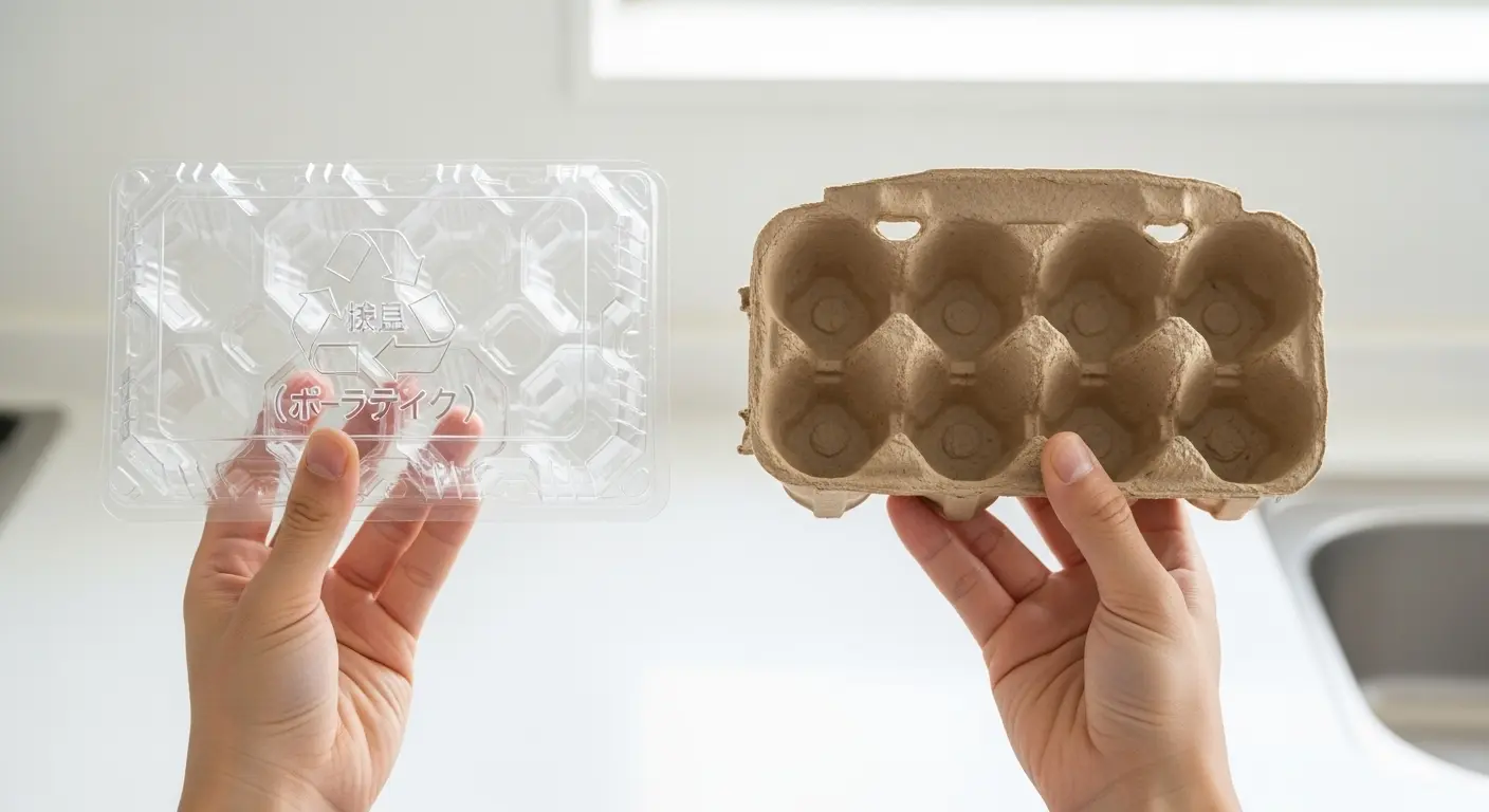 卵そのものよりも、意外と迷うのが「卵が入っていたパック」の捨て方ではないでしょうか?透明なプラスチックのものもあれば、最近増えている紙製のものもあり、さらにラベルシールが貼ってあったりと、分別に悩みますよね。ここを間違えるとリサイクルの妨げになるため、正しい知識が必要です。