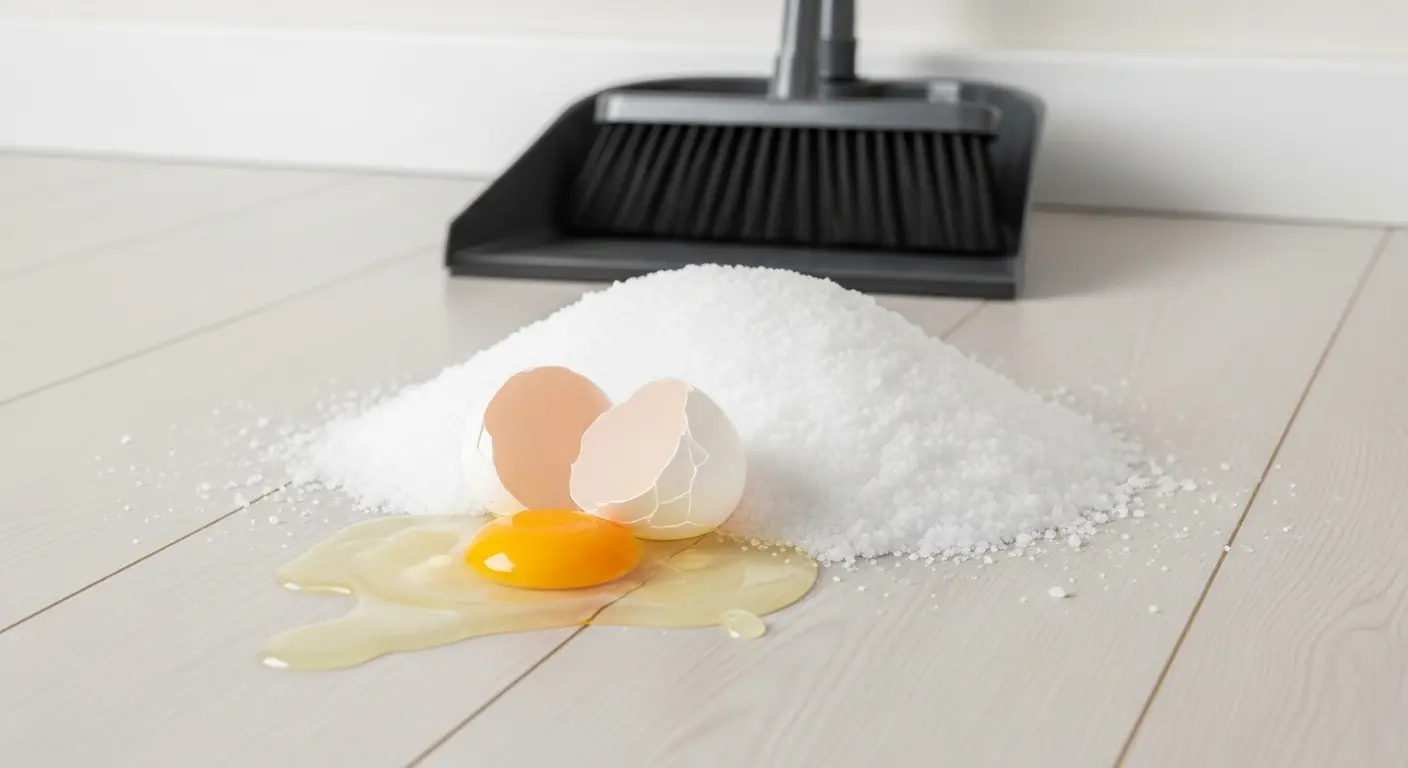 - 床に卵を落とした時は「塩」を使うとベタつかずに掃除できる裏技がある