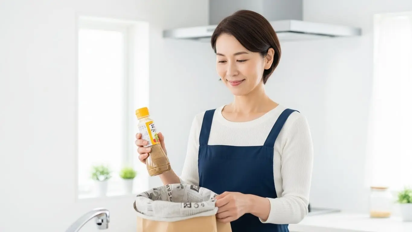 冷蔵庫の奥で賞味期限が切れてしまったドレッシングを見つけて、どう捨てればよいか迷った経験はありませんか。油分や塩分を多く含むドレッシングは、そのままシンクに流すと環境負荷がかかるだけでなく、排水管トラブルの原因にもなりかねません。