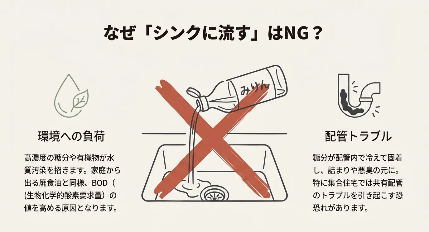 • 大量に残ったみりんを排水口に流してはいけない理由