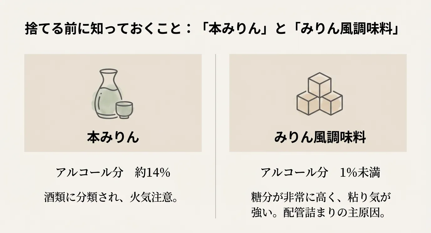 本みりんとみりん風調味料の違いと処分の注意点