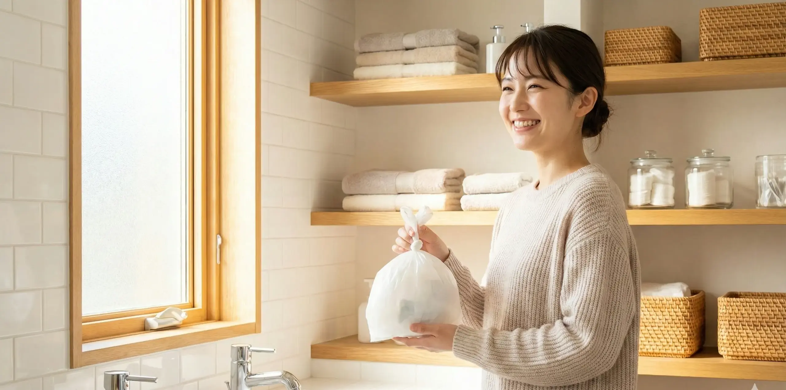 使用後は、お風呂場から出した後、ベランダや換気扇の近くなど、直射日光の当たらない風通しの良い場所で数時間放置しましょう。これだけで、ゴミ袋に入れた後の臭いは劇的に改善されます。
